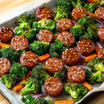 This dish feels like a modern weeknight cousin to the rustic sheet-pan suppers I’ve seen in home kitchens across Europe, where sausage and vegetables share heat, fat, and seasoning until everything becomes greater than the sum of its parts. The technique is deceptively simple but very professional: high-heat roasting creates Maillard browning on the sausage and edges of the vegetables, while the honey-garlic glaze is added at just the right moment so it caramelizes instead of burning. That contrast—sticky, smoky, tender, crisp—reminds me why I adore cooking. It’s the kind of meal that looks humble, but the flavor is layered and intelligent. I still remember tasting a version of this on a cold evening, straight from the pan, and feeling instantly comforted by its warmth and balance.