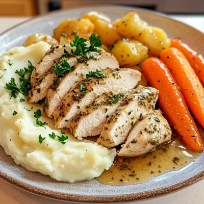7Plate with balance and shineSpoon the mashed potatoes onto warm plates, fan the chicken over one side, and nestle the glazed carrots alongside. Drizzle any remaining herb butter over the top and finish with parsley. Serve immediately for the best contrast of creamy, sweet, and savory elements.
