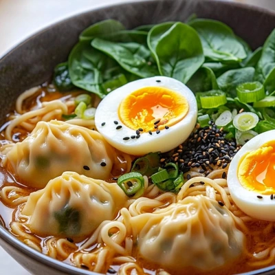 This Spicy Dumpling Ramen Bowl is a culinary journey that begins in the bustling streets of Asia, where the art of ramen and dumplings is perfected. The handmade dumplings, filled with savory goodness, are the heart of this dish. The spicy broth, infused with chili oil and garlic, is a testament to the bold flavors that define Asian cuisine. I first encountered this dish in a small ramen shop, where the chef's passion was palpable. The way the flavors melded together left a lasting impression, inspiring me to recreate this masterpiece. It's a dish that speaks to the soul, offering warmth and excitement in every bite.